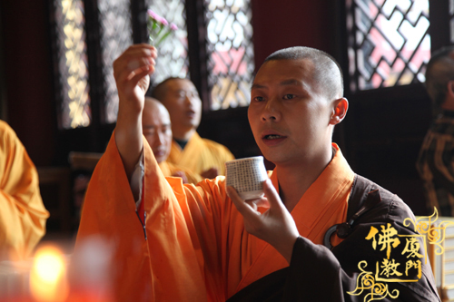 上午10时,法师、信众在地藏殿前排班,月妙法师主法举行恭请藏经仪式。南普陀寺首座圆智法师应邀在仪式上为众开示,圆智法师说恭请供养大藏经意义重大,世人长迷,佛法就是我们的指路明灯,并教导大家受持三皈五戒十善,做正信佛教信徒,自利利他。大家至心恭听,合掌受持。