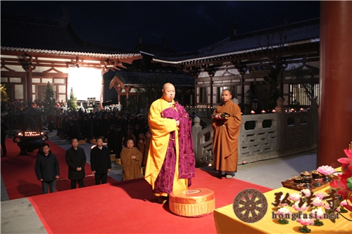 法会上人人手捧莲灯,从大和尚开始,依次点燃,众法师将手中的莲灯传至护法善信手中。点燃现场每位信众手中的灯,象征灯灯相传、愿愿相续。法会场面庄严感人,信众法喜充满,几百盏莲灯,共放光明。大家共同发愿回向:正法久住,国泰民安,世界和平。
