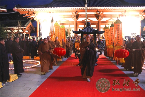 当晚六点,慈恩寺举行了传灯祈福法会。薪火相传,源远流长。印顺大和尚为众开示说,愿外在的灯点亮我们的心灯,永脱生死轮回苦海。手中传递的莲灯是智慧之灯,梦想之灯,希望大家可以继承本焕老和尚的精神,珍惜当下的因缘,继续为传播佛法而行愿大千,为自在解脱而培福修慧。