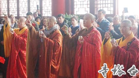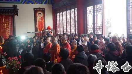 2014年11月29日,河北霸州白塔寺举行觉悟佛堂圣像开光法会,慧能法师、慧广法师、宽佛法师等法师主法。