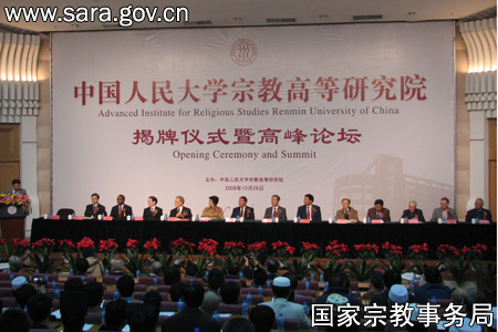2009年10月29日,中国人民大学举行宗教高等研究院揭牌暨高峰论坛启动仪式,国家宗教事务局王作安局长应邀出席活动并致辞。