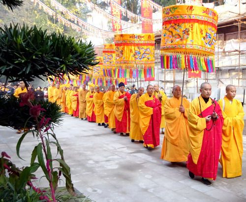 达州德化寺举行西方三圣像开光暨船福和尚圆寂传供法会迎请诸山长老