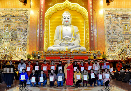大觉寺都监妙士法师与23位满分奖得主合影留念