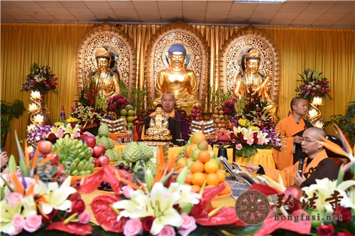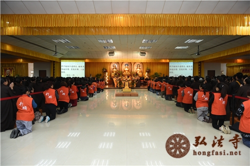 2015年1月7日,在这无比殊胜的阿弥陀佛圣诞日,弘法寺隆重举行千人三皈五戒法会,自全国各地近两千位信众一齐皈依三宝、纳受戒体。受十方信众的祈请,中国佛教协会副会长、海南省佛教协会会长、深圳弘法寺方丈印顺大和尚为大众皈依三宝及证盟授戒。