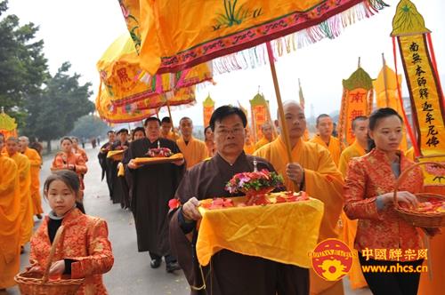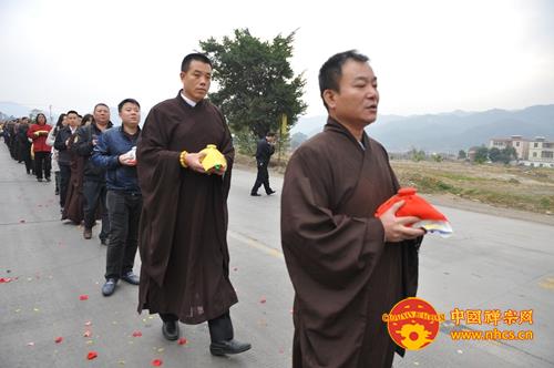 上午八点,传正大和尚率领两序大众恭敬礼拜佛陀舍利后,常住法师及众护法居士手捧舍利、珍宝及鲜花,列队前往万佛宝塔装藏处安放佛陀舍利与七宝珍品。来自各地的善信居士无不欢喜赞叹,更有很多香客游客闻此盛事,也都欢喜跟随,一直感叹自己非常太幸运。