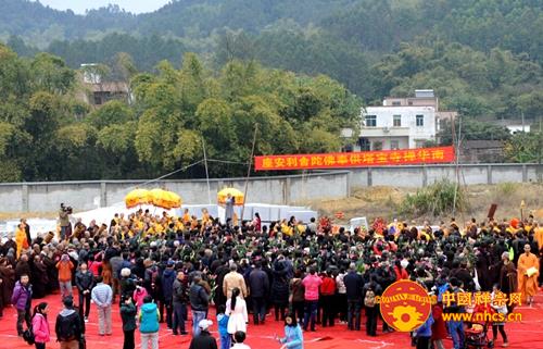 万佛宝塔是南华禅寺“大南华”建设的重点工程,宝塔建成之后,将会成为南天佛国的标志性建筑。万佛宝塔于2014年8月开工启动,经过近五个月的工程施工,宝塔地基已全部落成。藉此佛陀舍利安座仪式,南华禅寺方丈传正大和尚说:“祈愿世界消灾息难、人民安居乐业,祈愿佛陀正法永驻于世,法轮常转!”