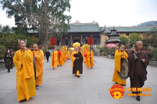 今天上午,南华禅寺隆重举行万佛宝塔供奉佛陀舍利安座仪式。广东省佛教协会常务副会长、韶关市佛教协会会长、南华禅寺方丈传正大和尚与南华禅寺首座继光法师、首座有学法师、首座法祇法师、西堂传道法师共五位法师主法。南华禅寺四众弟子千余人法喜充满的参加了本次仪式。