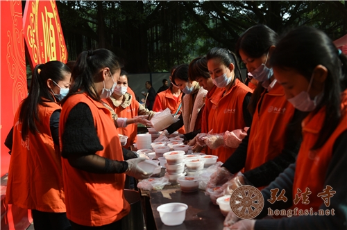 为纪念佛祖释迦牟尼成道日,同时与广大民众共度中国传统的腊八节日,弘法寺秉承佛陀慈悲喜舍的弘愿和开山祖师本焕长老行愿大千的精神,每年都会举行形式多样的慈善活动,助贫济困、利益众生、福利社会,其中每年的腊八免费施粥也是其中活动之一,深受大众喜爱,收到良好的社会效果,大众同享欢乐,喜迎吉祥。