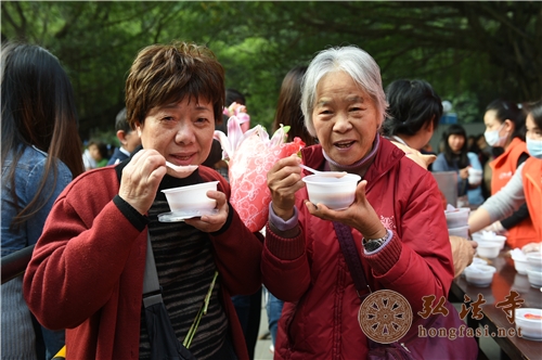 2015年1月27日,农历腊月初八,弘法寺隆重举办一年一度的腊八免费施粥活动。中国佛教协会副会长、海南省佛教协会会长、深圳弘法寺方丈印顺大和尚带领弘法寺常住法师、护法义工等,与前来参加的广大市民共同过一个喜庆、平安、吉祥的腊八节日,并向广大市民及十方信众馈赠腊八福粥,上万名信众、市民随喜参加,欢喜受纳。