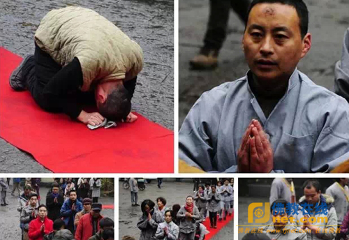 祝圣法会圆满后,念顺法师带领大众以三步一拜的方式参拜巡礼,直至大雄宝殿释迦牟尼佛前。整个参拜队伍井然有序,如理如法地进行三步一叩拜,活动现场庄严殊胜,现场大众法喜充满。