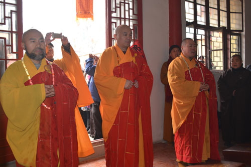 庆典仪式过后,果光大和尚、合愿法师、明德法师为佛像隆重开光。