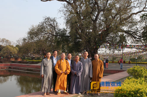 松纯长老一行在佛陀释迦牟尼诞生地蓝毗尼菩提树前合影