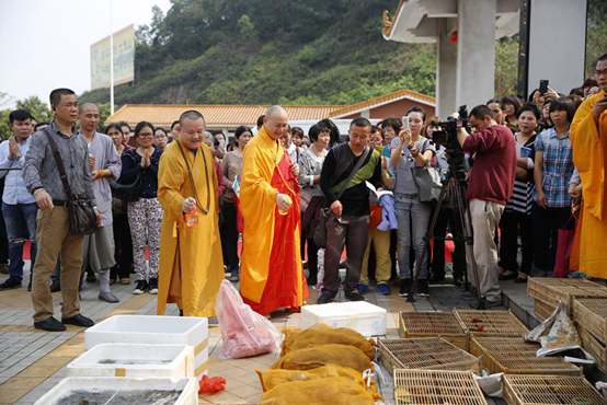 3月18日上午,应广东鹤山海会寺住持上常下俊大和尚邀请,传喜法师主持《祈福广东》慈悲放生法会。