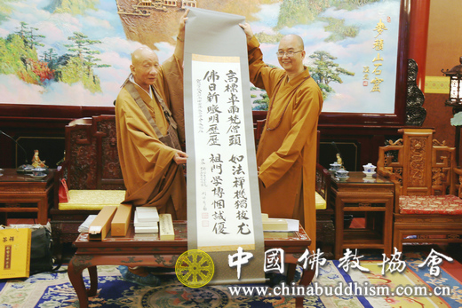 2015年5月8日下午,日本临济宗妙心寺派灵云院住持则竹秀南长老一行31人拜访中国佛教协会,受到中国佛教协会会长学诚法师、副会长演觉法师、副会长宗性法师的热情接待。