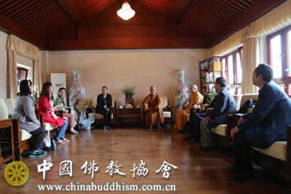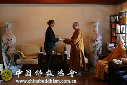 2015年5月9日下午,中国佛教协会会长学诚法师在北京龙泉寺会见荷兰(国家)佛教电视台台长拉伊娅·舒尔芙女士一行。