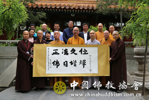 2015年5月13日上午,台湾灵鹫山性月法师一行10人拜访中国佛教协会,受到中国佛教协会会长学诚法师、秘书长刘威的热情接待。