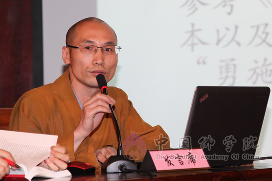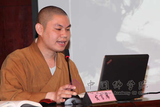 中国佛学院有5位法师参加本届论文发表会,他们分别是:2014级博士研究生理净法师、可潜法师,2013级硕士研究生道悟法师、来浩法师、恣振法师。理净法师发表论文题目为《华严金师子章略考》;可潜法师发表论文题目为《法华经六番神咒研究之二——勇施菩萨所说咒》;道悟法师发表论文题目为《解斋:从回向到盛会——以八关斋戒为例》;来浩法师发表论文题目为《略论药师经中“国无女人”》;恣振法师发表论文题目为《异部宗轮论述记典籍考》。