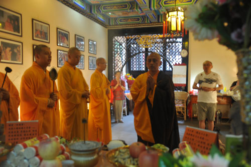 2015年6月14日(农历四月二十八)上午,成都文殊院为纪念宽霖法师诞辰110周年举行了庄严的纪念法会。在大雄宝殿及宽霖法师纪念堂上供结束后,信众们以虔诚之心礼拜老和尚舍利,感怀纪念老和尚恩德。