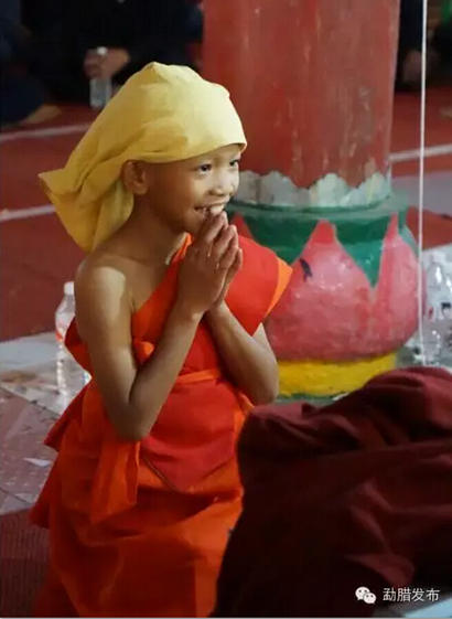 不仅父亲家忙,干爹(教父)家也同样忙得不可开交,而准和尚则要在这一天进行剃度仪式。此次曼岭出家的7个小男孩年龄从9岁到12岁不等,其中最小的两位是一对可爱的双胞胎兄弟,问及为何出家时,哥哥羞涩地说,因为弟弟想出家,他怕弟弟一个人孤单没有伴所以陪他出家。真是中国好兄弟啊,小编瞬间被兄弟俩感动萌化到不行~