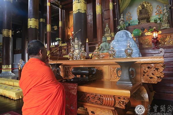 究源法师陪同沙威长老一行参观弥勒道场雪窦寺