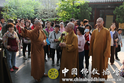 座谈结束后,双方互赠礼品并在广济寺大雄殿前合影留念。