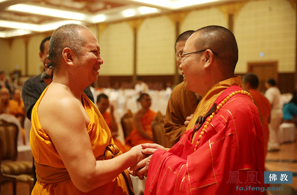 摩诃朱拉隆功佛教大学校长梵智长老与耀智大和尚亲切会面。(图片来源:凤凰佛教 摄影:妙传)