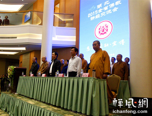在开幕式上,黄石市市委常委、统战部长胡勇政先生对2015年湖北省佛教讲经交流会的举办表示祝贺,指出讲经交流会是佛门盛事,也是宗教界的盛事。鼓励佛教界进一步把佛教文化的优良传统与实现中国梦结合起来,以戒为师,顺应社会的发展,通过讲经说法引导信众树立正信正行,为社会发展做出贡献。黄石市佛协会长演觉法师在致辞中强调开展讲经交流活动有利于佛教弘法利生事业,有利于推动佛教文化建设,有利于推动佛教人才建设。