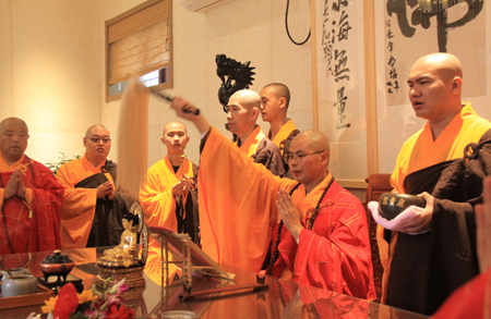 心见法师在大雄宝殿内送位