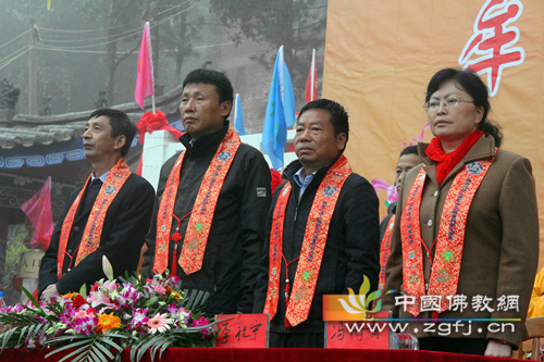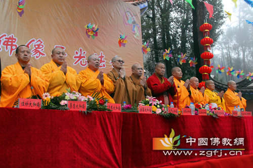 参加此次庆典的高僧大德有:中国佛教协会专委会办公室副主任、大连圣水寺、庄河红崖晓寺、山东淄博牛山三宝禅寺方丈性妙大和尚,山西五台山广宗寺方丈演明大和尚,河北省佛教协会副会长、邢台市佛教协会会长果慧大和尚,新加坡摘心庵方丈法鉴大和尚,新加坡达开大和尚,云南省佛教协会常务理事、楚雄州市佛教协会会长清缘大和尚,辽宁省盘锦市佛教协会副会长兼秘书长龙海大和尚,云南省楚雄州市佛教协会副会长法轮大和尚,河北省唐县佛教协会副会长尊行大和尚,河北省保定市佛教协会副会长龙法大和尚,四川省德阳市佛教协会弘法部教务主任、广汉市佛教协会常务理事兼副秘书长慧永法师,四川省成都市大悲寺方丈秋杨大和尚等。