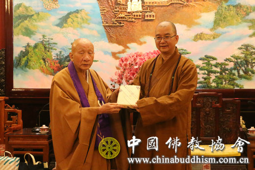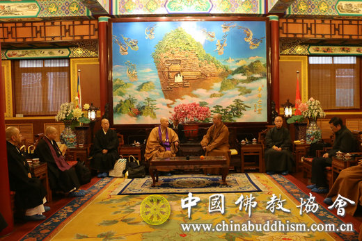 2015年12月14日下午,日本临济宗妙心寺派灵云院住持则竹秀南长老一行6人拜访中国佛教协会,受到中国佛教协会会长学诚法师、副会长演觉法师的热情接待。张琳副秘书长等陪同会见。