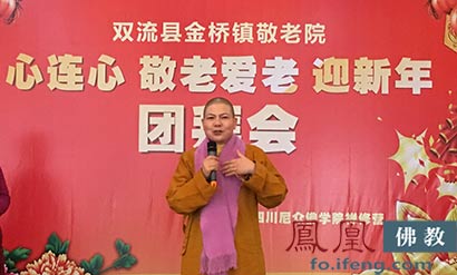 成都双流县老人们齐聚老人院,此次活动由四川尼众佛学院禅修营主办。慰问中,院长表示尊老爱老是中华民族的传统美德,希望尽绵薄之力,给老人一份关爱、一份温暖,让广大老年人安享晚年、共享和谐。