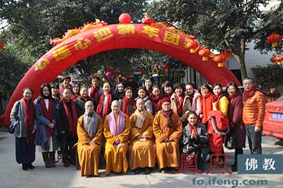 四川尼众佛学院法师一行人等与禅修营合影(图片来源:凤凰佛教)