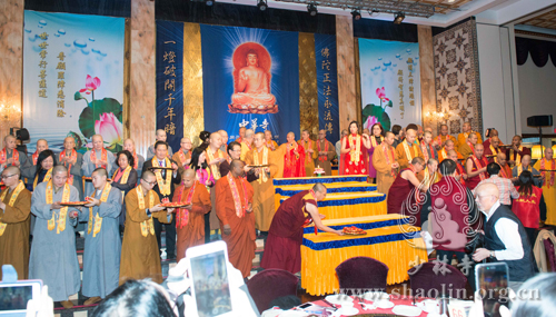 当地时间2016年1月17日,农历腊月初八,为庆祝本师释迦牟尼佛修行成道日,加拿大中华寺举办首届“温馨传灯千人素宴大型盛会”。加拿大少林文化中心负责人延冲应邀带领70为弟子参加盛会并带来精彩的少林功夫展演。加拿大多伦多各佛教团体及当地政府机构也参加了该盛会。