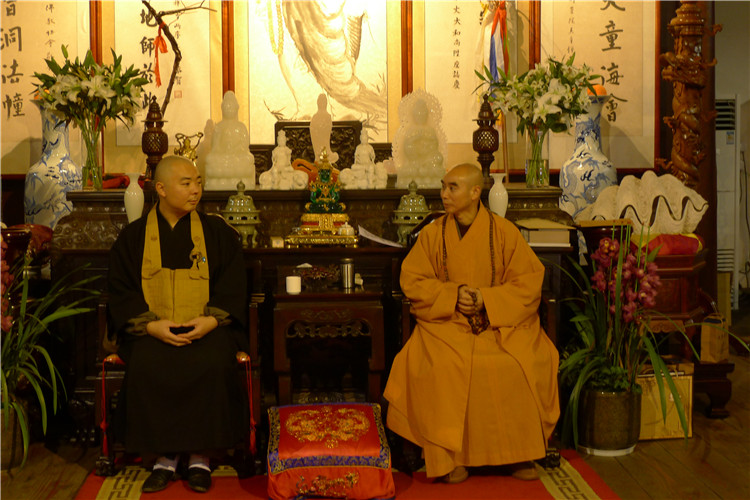 渡边龙道先生首先非常感谢诚信大和尚百忙之中能予以热情接待。并表达了在天童寺参访的激动心情,表示一定遵从祖师的脚步,接受大和尚的勉励,努力继承发扬佛教的优良传统,做好中日友好交流的桥梁。