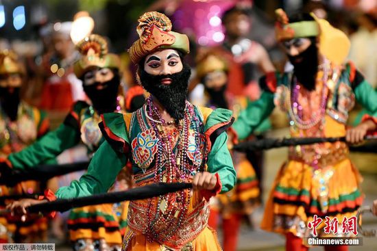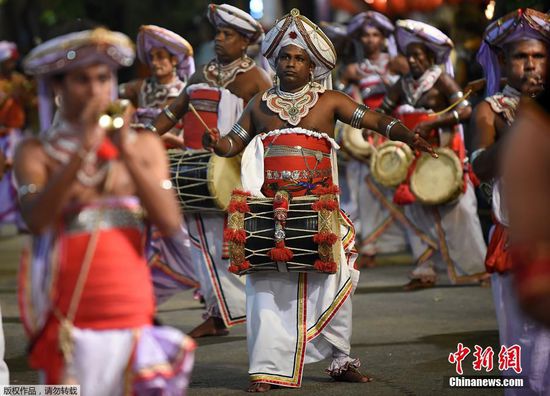 当地时间2月22日,斯里兰卡科伦坡拉玛耶佛寺举行佛事活动。数千名鼓手、舞者和僧侣及70头大象聚集在首都科伦坡,参加了为期两日的佛教游行。