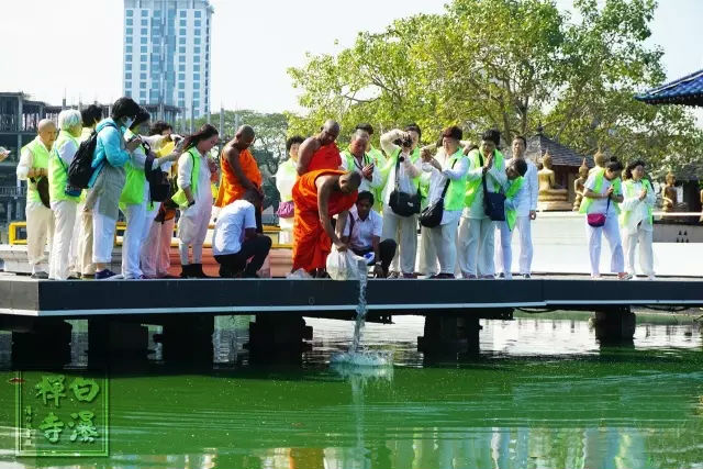 近日,白瀑寺千亩万生园朝圣放生团在抵达斯里兰卡首都科伦坡后。首先前往水上寺,礼拜释迦牟尼佛发舍利,并举办小规模放生活动。