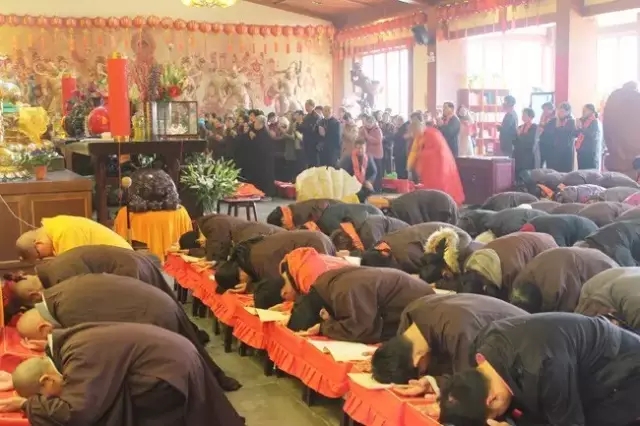 虔诚跪拜的僧俗们