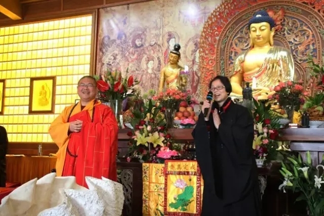 27日上午,妙华法师又带领四众弟子,依循《观世音菩萨祝圣仪规》,如理如法地举办了祝圣法会。在此后的开示中,法师着重赞叹了护法居士们的种种真诚付出,并且分别邀请功德主、文宣组、义工组的代表居士发表了各自的护法感言。牛居士的谦逊率真、林居士的锐意进取和单居士的无私奉献,令与会信众赞叹折服,数度报以热烈的掌声。