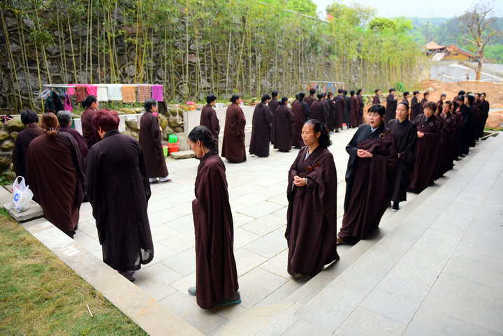 12日下午3时,在悦众师的引领下,与会四众齐唱《赞佛偈》,随后,经行念佛正式开始。香光讲堂一时梵音弥漫,清畅哀亮的东林佛号荡漾在寺院上空。24小时的经行念佛中,与会大众怀着舍生死、出轮回、生极乐的道心,头顶青露,脚踩莲花,相续着这句万德洪名,场面震撼人心。