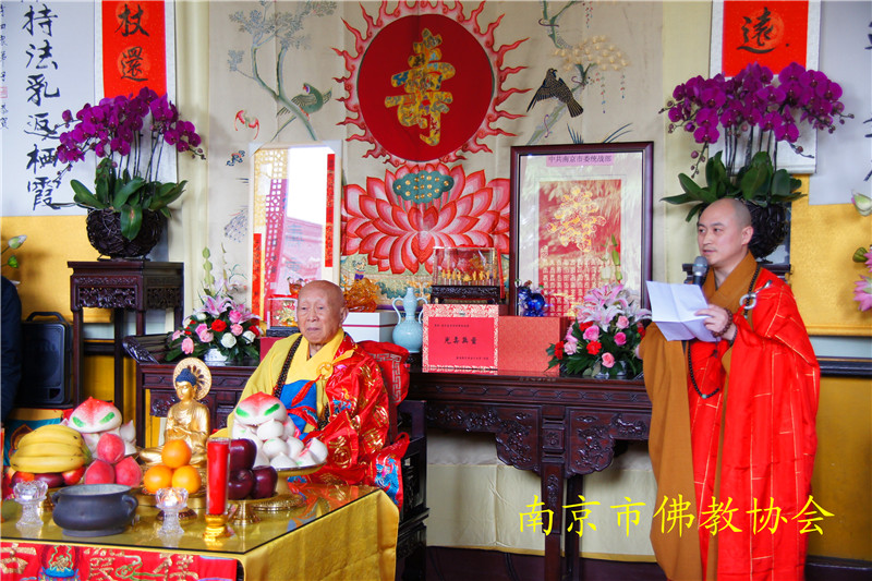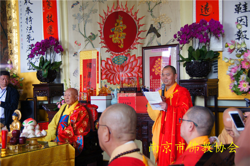 江苏省委统战部副部长、江苏省宗教局李国华局长,南京市委统战部副部长、南京市民族宗教事务局李兰局长、纪勤副局长;中共栖霞区委邢正军书记,栖霞区人民政府常务副区长曹海连,副区长万震;栖霞区政协副主席、区委统战部长时效俊等领导也莅临现场,恭贺长老寿诞。