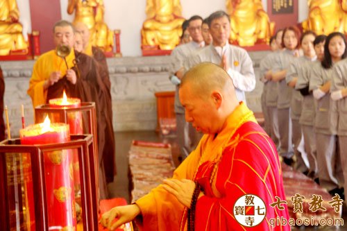 上午8时30分,上海会龙寺首座照闻法师为学员们开示。紧接着,我寺住持慧平法师为学员们亲自教授梵呗《炉香赞》,并且为学员们讲述佛教常用之法器的敲打方法。慧平法师说:“法器为龙天之耳目,如法敲打可获不可思议之功德。”学员们认真的听着,并跟随着法师们一起唱诵,现场梵音缭绕,庄严祥和。