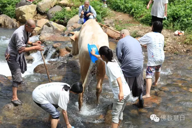 6月21日,宁波慧日禅寺组织出坡,关心爱护寺内动物。