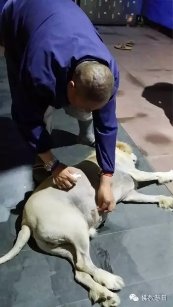 法堂结束后,供灯“狗是我们的好朋友,请照顾好牠们”。