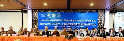 2016年10月22日上午,福山合卢寺第四届福寿文化周暨海峡两岸“药师如来与人间佛教”论坛开幕式在合卢寺普觉传媒中心一楼举行。(图片来源:凤凰佛教)