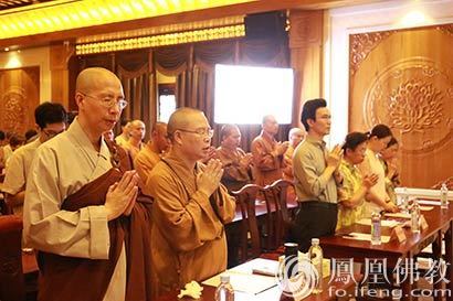 耀智大和尚、康景轩教授、定弘法师、纪洁芳教授参加开班典礼仪式(图片来源:凤凰佛教 摄影:李国坚)