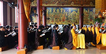 礼诵《药师宝忏》(图片来源:凤凰佛教,摄影:顿辉、顿诚)