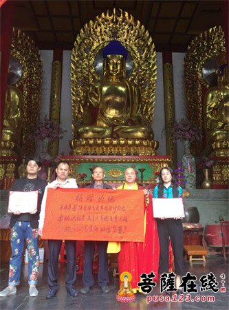 菩萨在线上海讯 2016年10月26日上午10时,上海洪福寺举行东奉集团捐赠万年铜香炉、铜门铜窗装饰工程仪式。洪福寺住持圣怀法师代表上海洪福寺接受捐赠。各界爱心人士、法师们一起见证了此殊胜时刻。