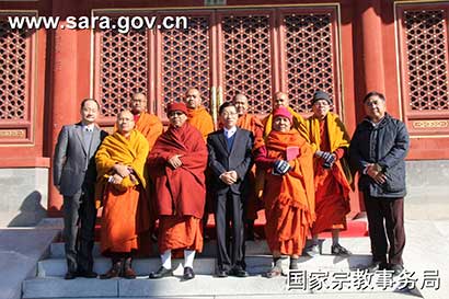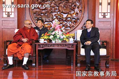 2016年10月31日上午,国家宗教事务局副局长蒋坚永会见了缅甸曼德勒玛索英新寺院住持尅达雅为团长的缅甸曼德勒高僧代表团一行。