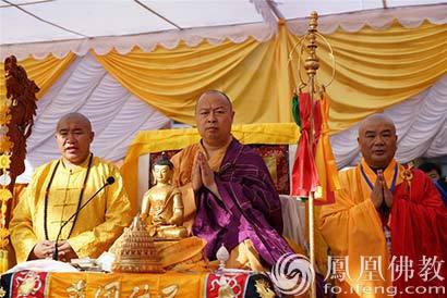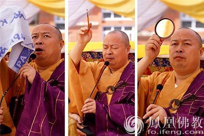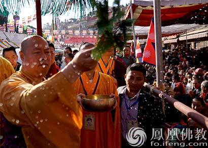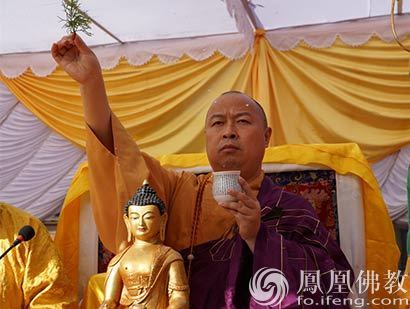 中国佛教协会副会长、尼泊尔中华寺方丈印顺大和尚登坛洒净(图片来源:凤凰佛教 摄影:昌俊)