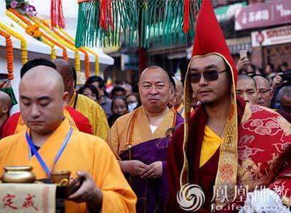沿途信众以不同形式庆祝法会(图片来源:凤凰佛教 摄影:昌俊)